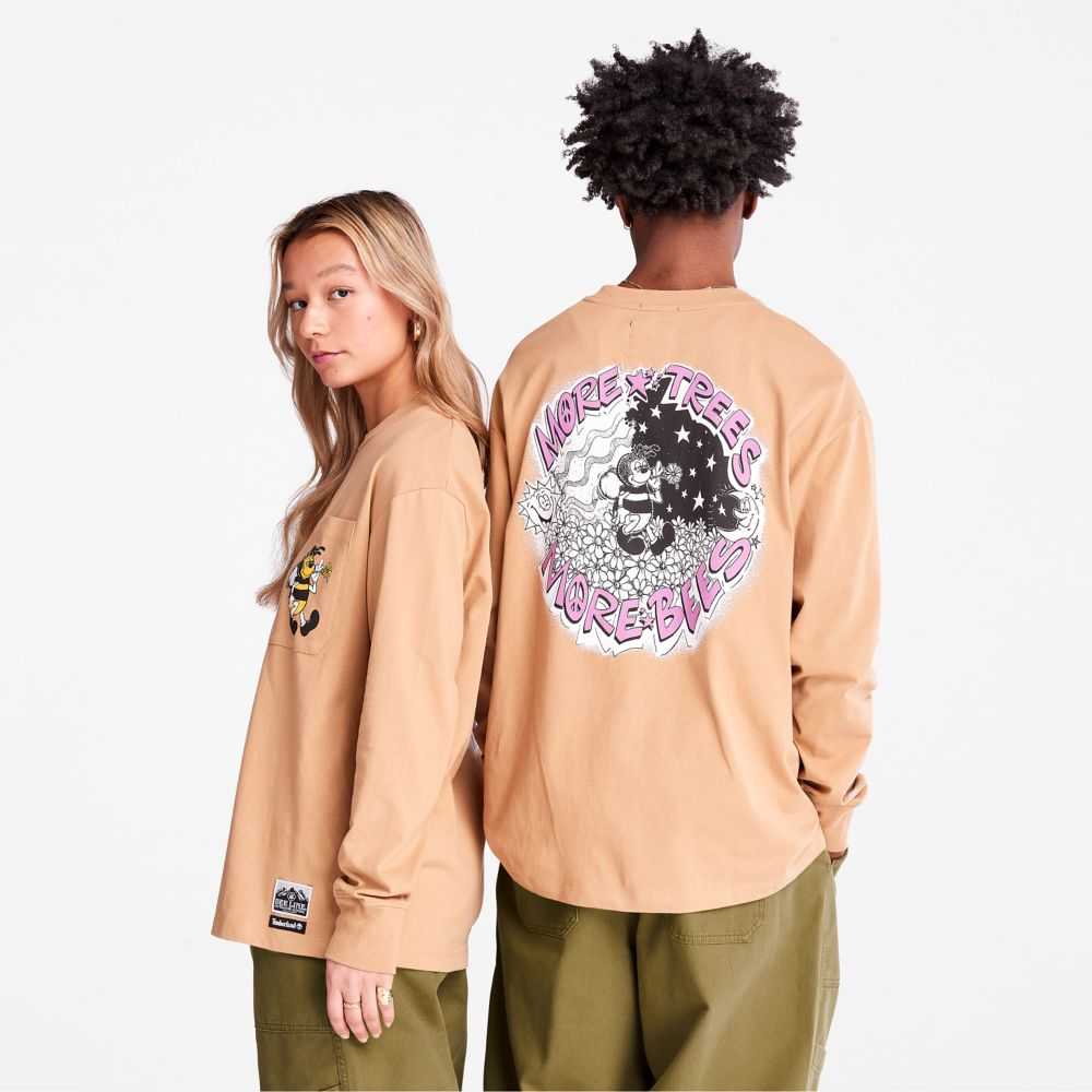 This collaboration celebrates Timberland’s rugged workwear heritage and Bee Line’s signature approach to color.Designed for comfort with a relaxed fit,this all-cotton long-sleeve tee features an eye-catching graphic print on the back.