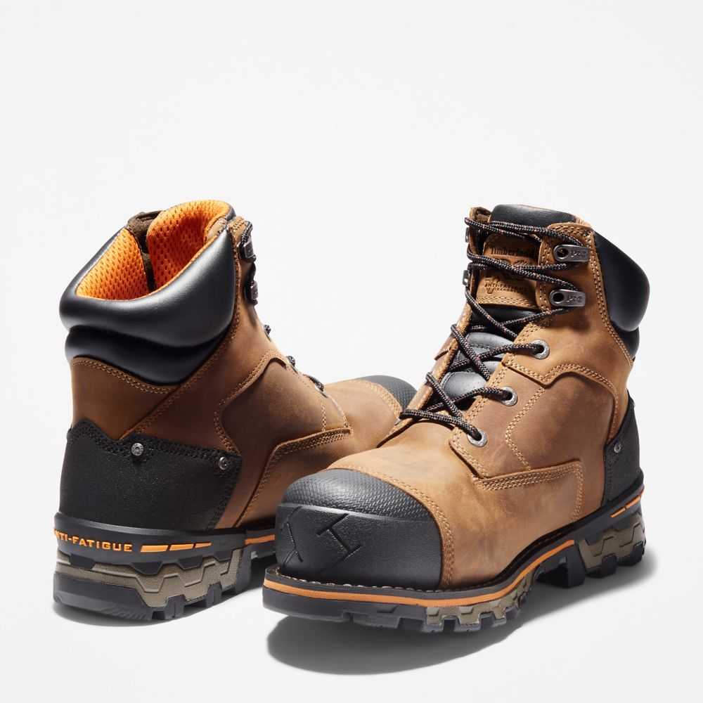 These 6-inch soft-toe boots are completely waterproof and feature an anti-fatigue technology polyurethane footbed for shock absorption and energy return.