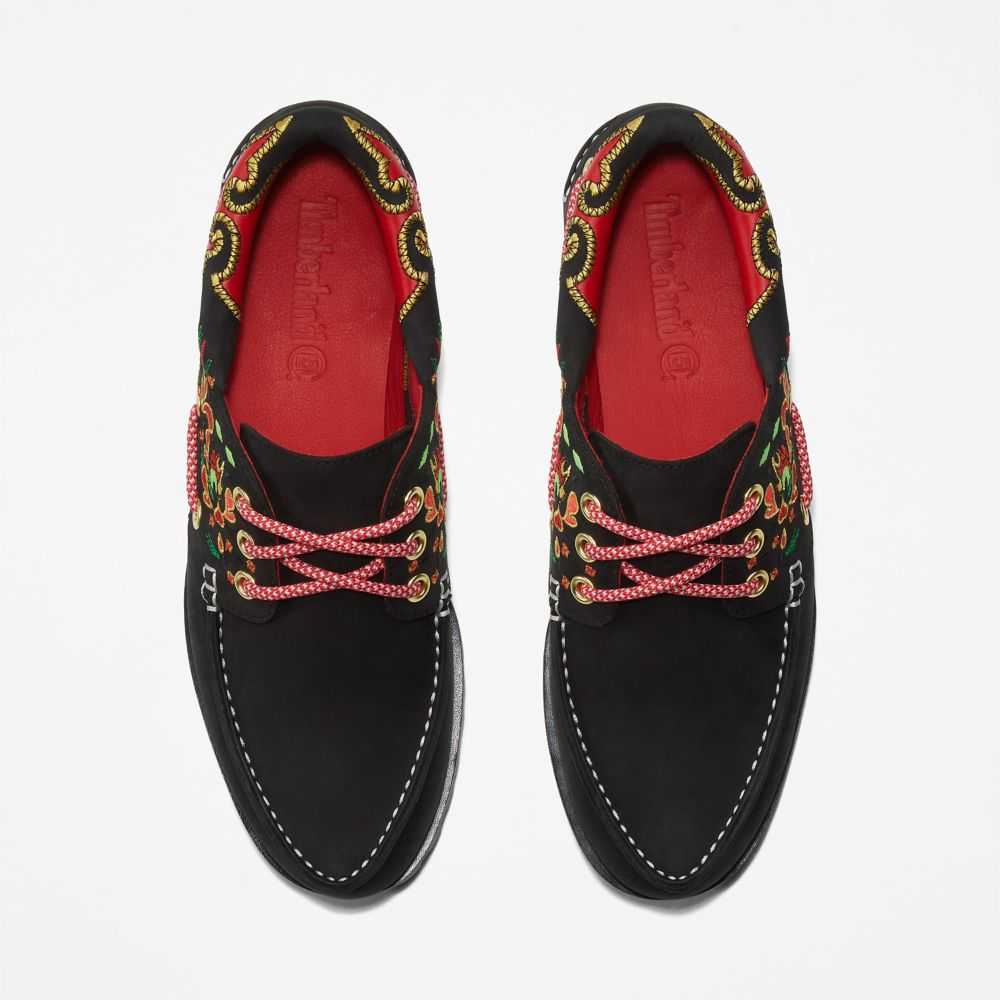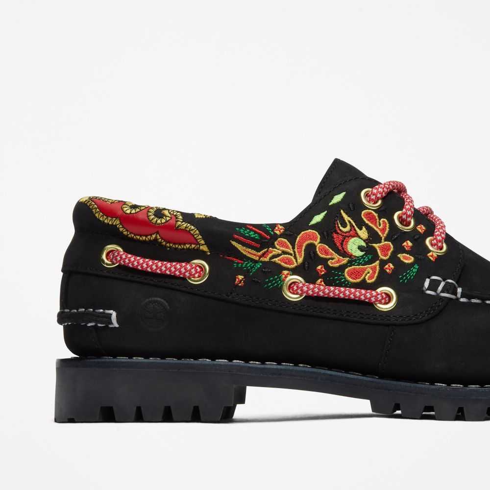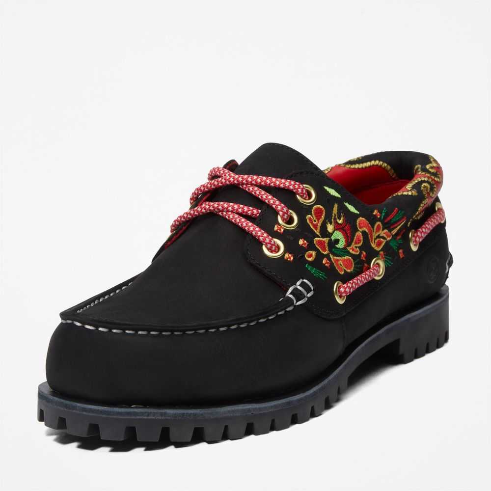 Hong Kong fashion label CLOT and Timberland have collaborated to bridge East to West.CLOT cofounder Edison Chen adds Asian-inspired designs and details to new and classic Timberland® styles,reflecting the best of both brands.Together we've reimagined our classic 3-eye boat shoe with color and Eastern-inspired silk embroidery.