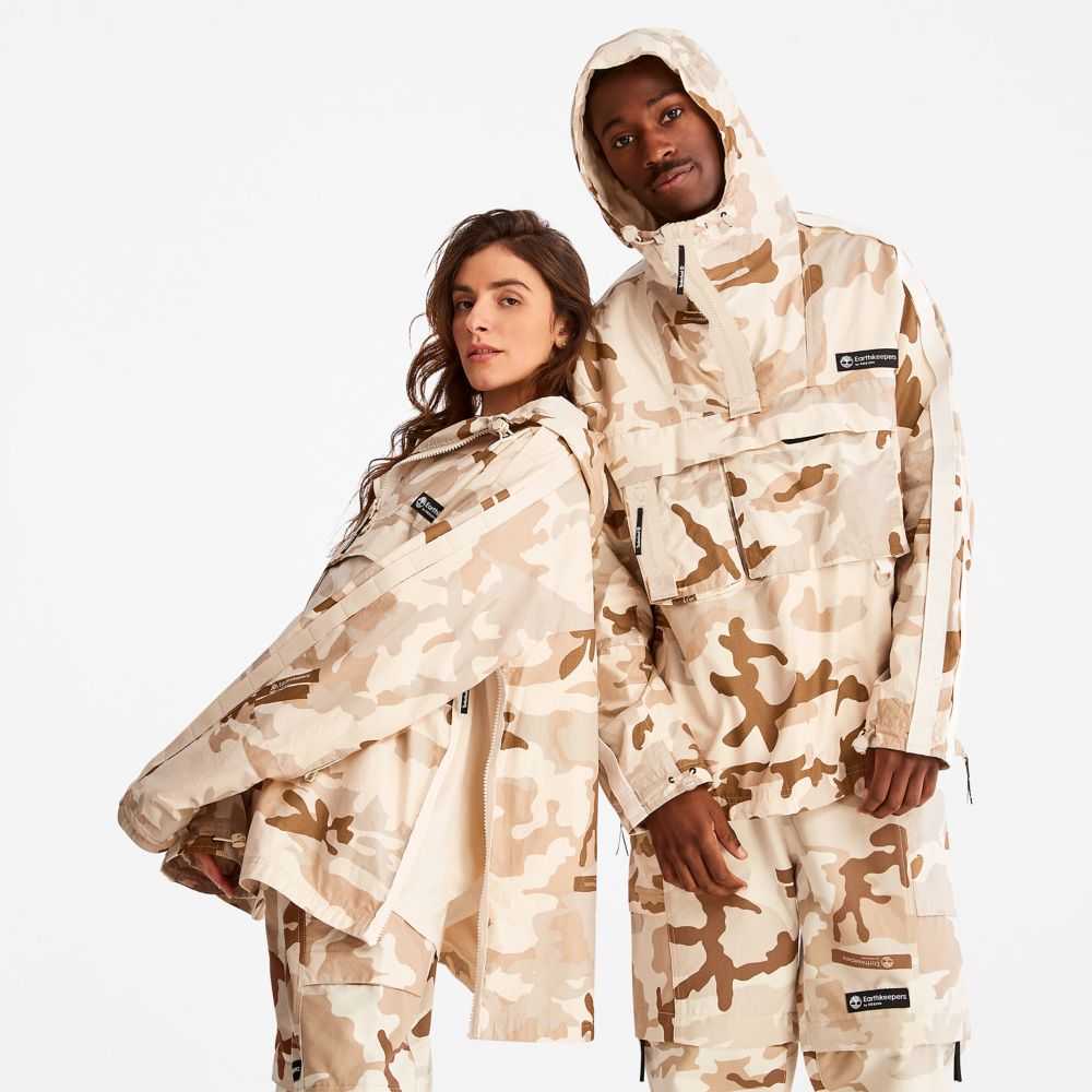 Our highest level of eco-innovation created by Timberland Creative Director Christopher Raeburn.Water-repellent,durable,and conveniently packable,this anorak features an allover camo print and is responsibly made with cotton grown without harmful chemicals or pesticides.