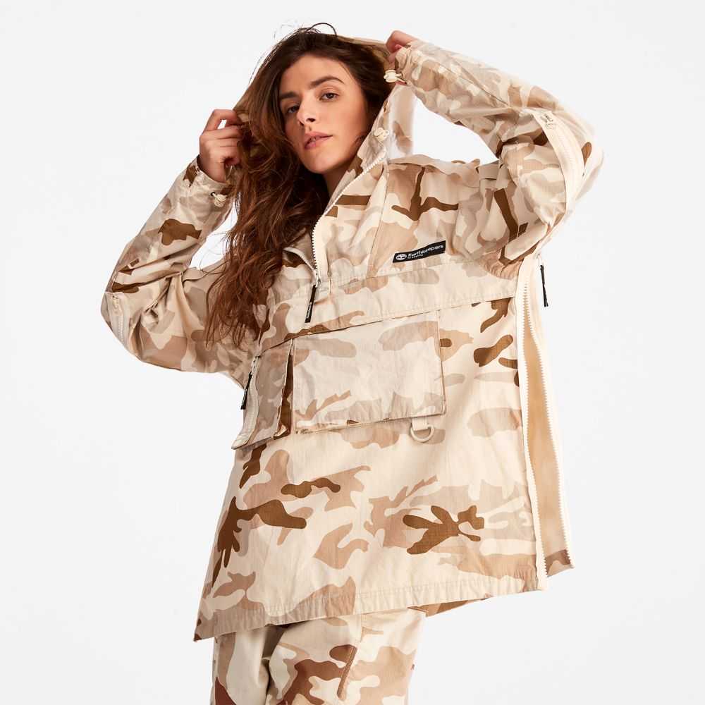 Our highest level of eco-innovation created by Timberland Creative Director Christopher Raeburn.Water-repellent,durable,and conveniently packable,this anorak features an allover camo print and is responsibly made with cotton grown without harmful chemicals or pesticides.