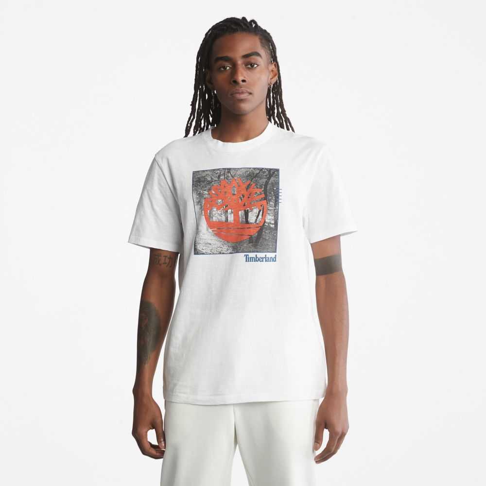 Featuring an eye-catching photographic and printed graphic on the chest,this men's tee is crafted with a rugged-looking but easy and comfortable slub fabric that's 100% organically grown.