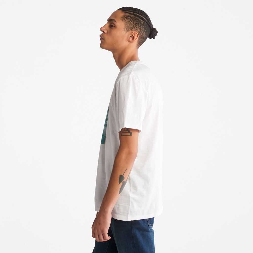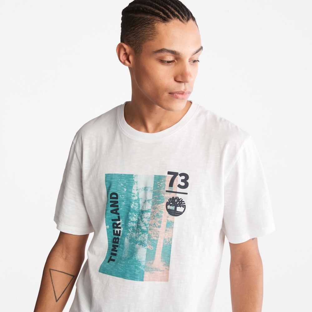 Featuring an eye-catching photographic and printed graphic on the chest,this men's tee is crafted with a rugged-looking but easy and comfortable slub fabric that's 100% organically grown.