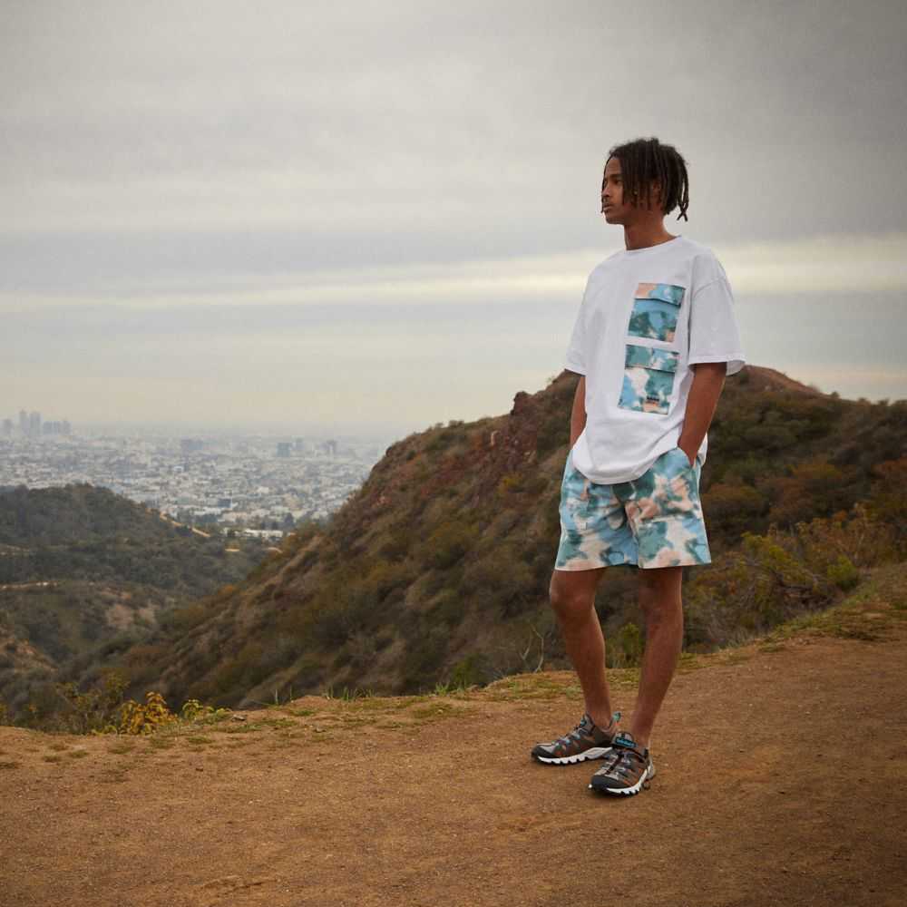 • Double mixed-media cargo pockets with an allover print