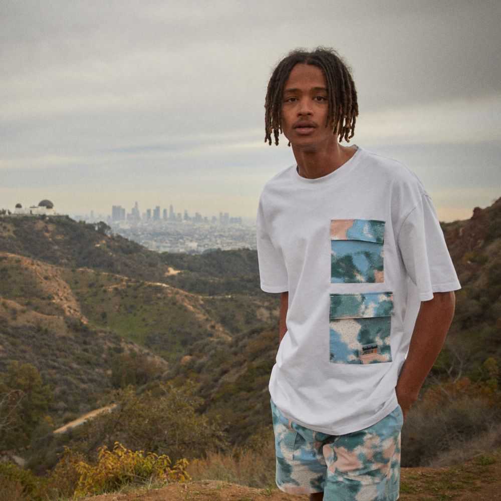 Worksite-inspired design at the edge of utility.This men's summer tee with stacked front pockets sporting an allover summer print.The relaxed fit helps ensure your comfort,and 100% organically grown cotton fabric will provide ethical comfort,too.
