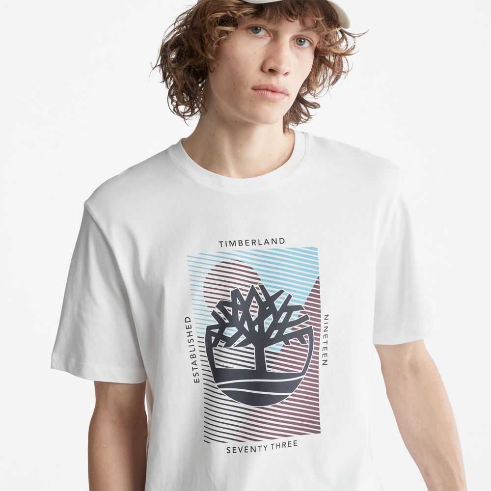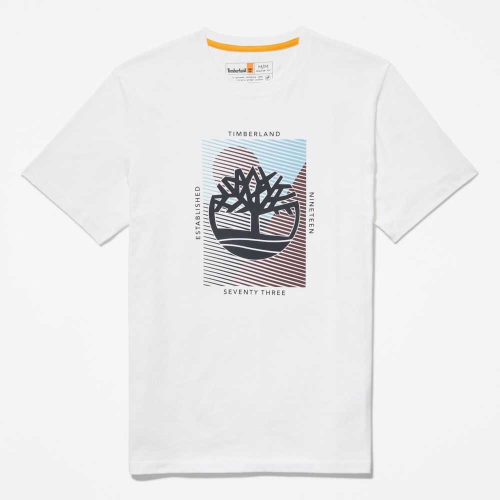 The Timberland tree logo gets a pigment-printed graphic treatment on this men's tee made from cotton grown without harmful chemicals or pesticides.